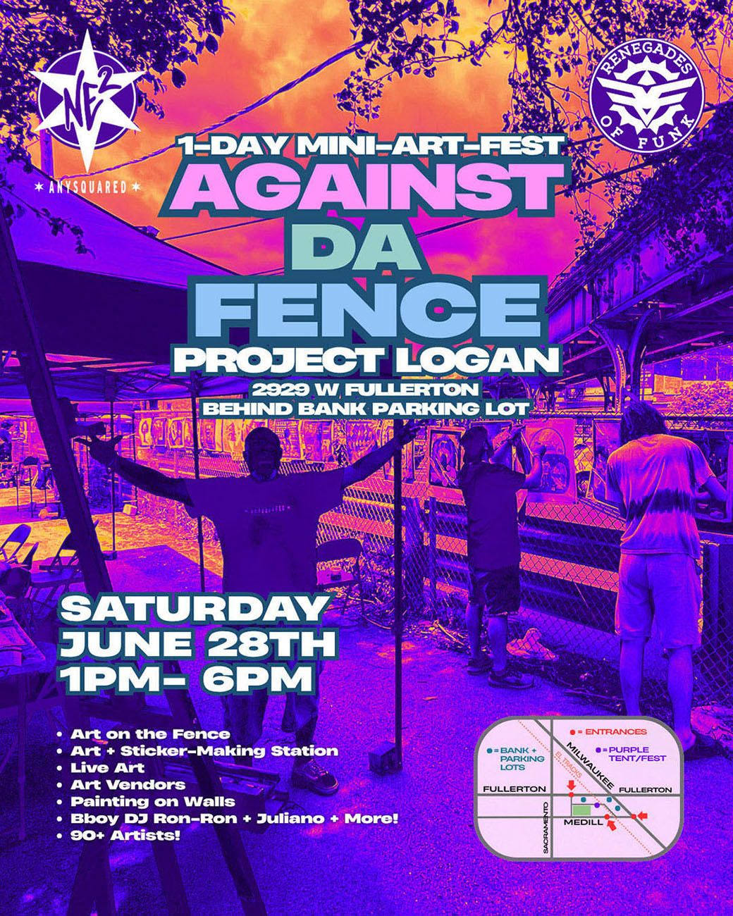 Recap: better late than never! Good vibes and good weather! Love to all the artists who shared their work. Thanks everyone who volunteered to make Against Da Fence happen! Always an amazing Renegades of Funk/ AnySquared Collab! You are appreciated! Renegades of Funk@rof.chi AnySquared@ne2_gallerysquared