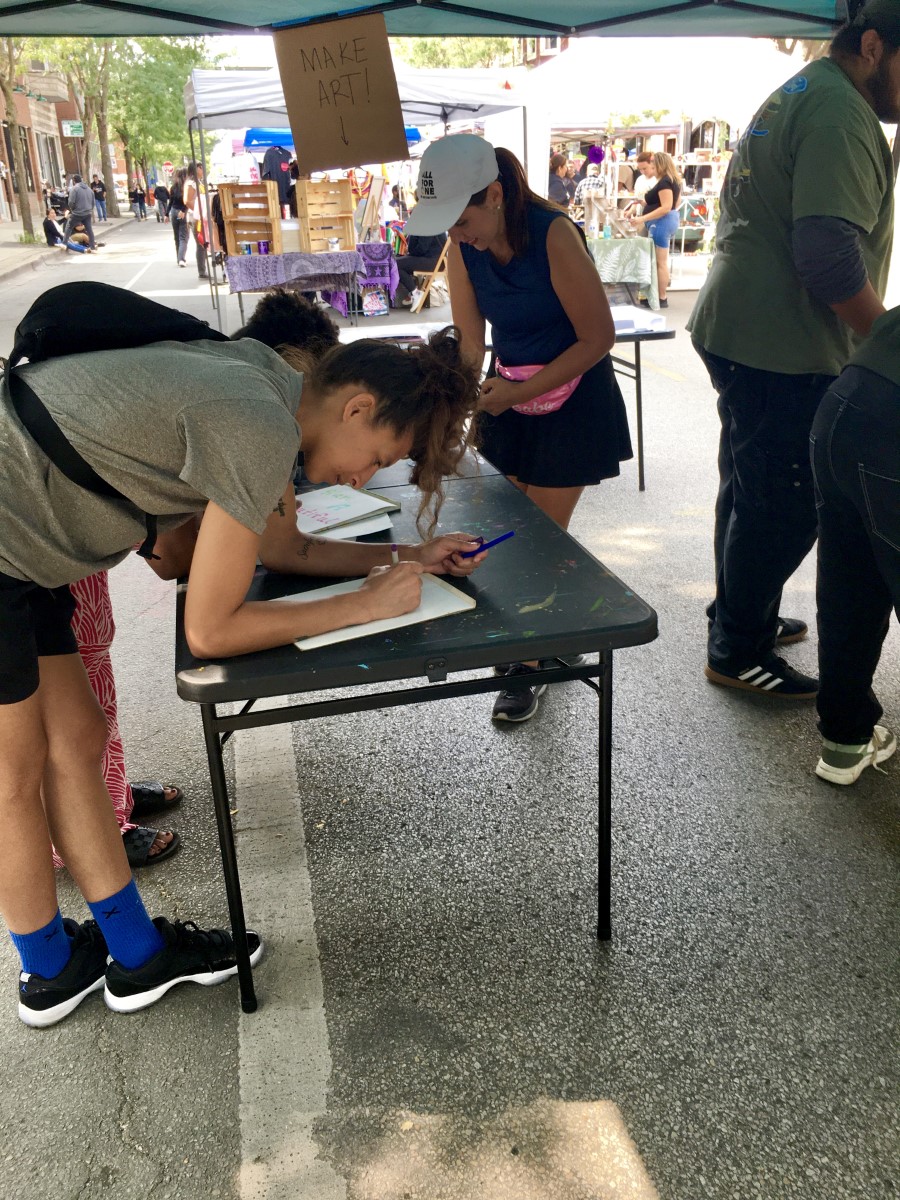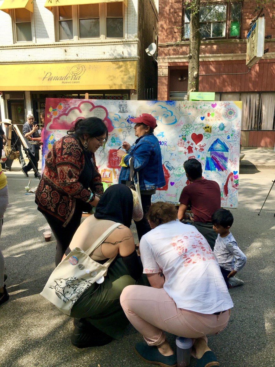What a beautiful day last Sunday at Pilsen Arts & Community House’s Hecho En Art Fair! So much wonderful art and so many amazing artists. AnySquared held down the artmaking activities with families and live art! Thanks to all the volunteers and the 300+ people who helped create the mural canvas. Gratitude to the AnySquared artists who not only made art but also volunteered!