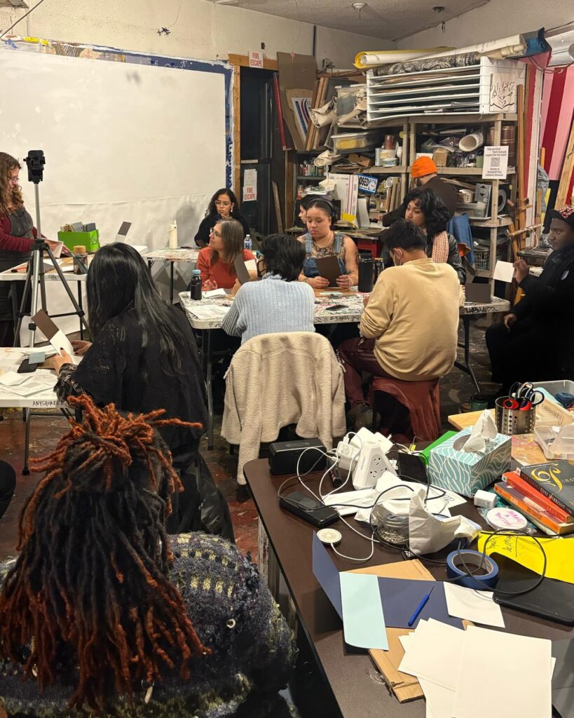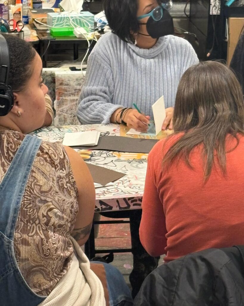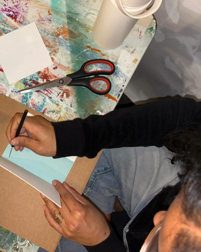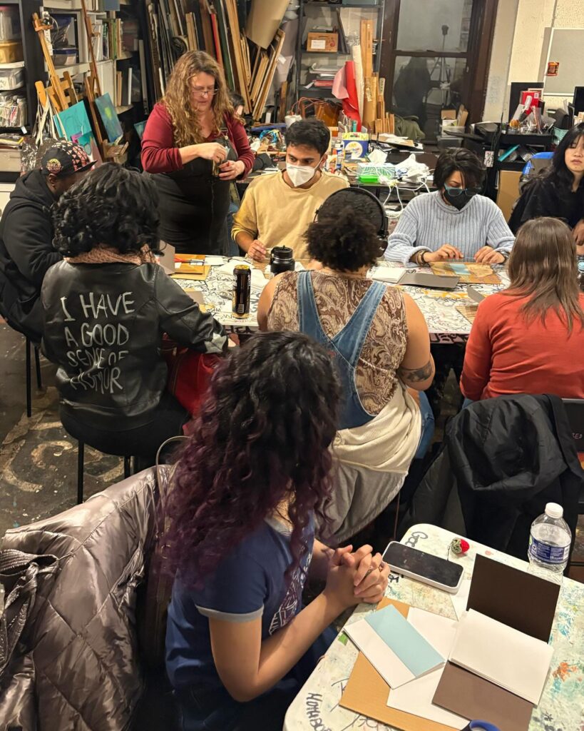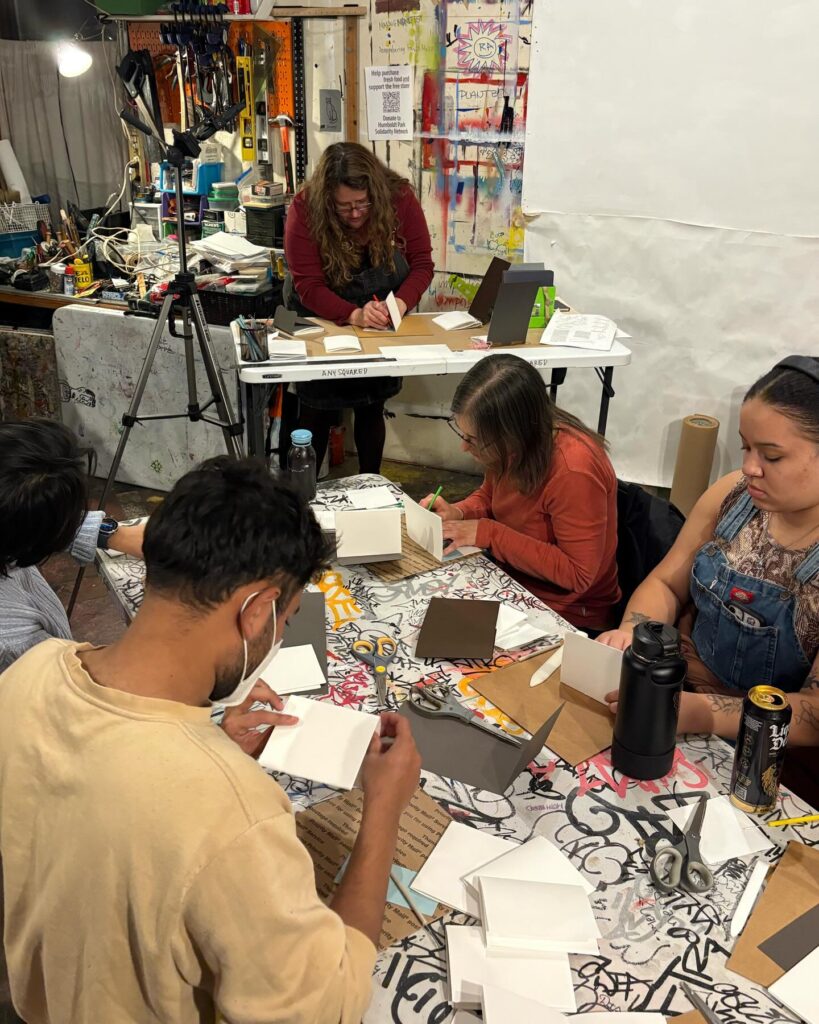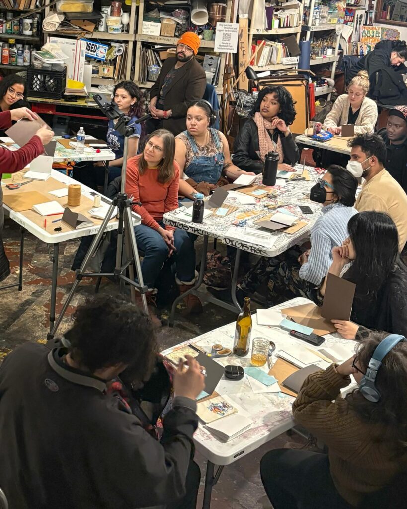 Recap: Tracy Kostenbader @tracykostenbader shared techniques of modified long-stitch sewing into a cover for a simple and versatile binding. Thanks to all who participated and made books. Tracy will be available on studio days for anyone who needs extra coaching.