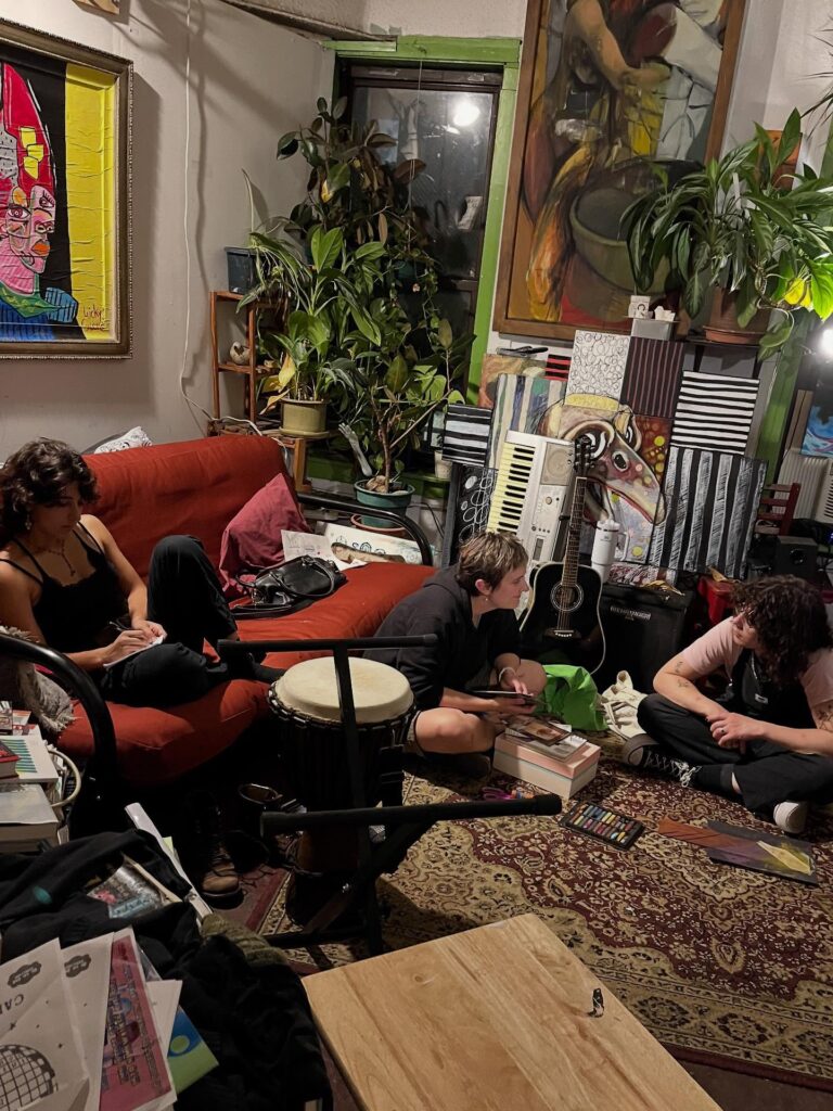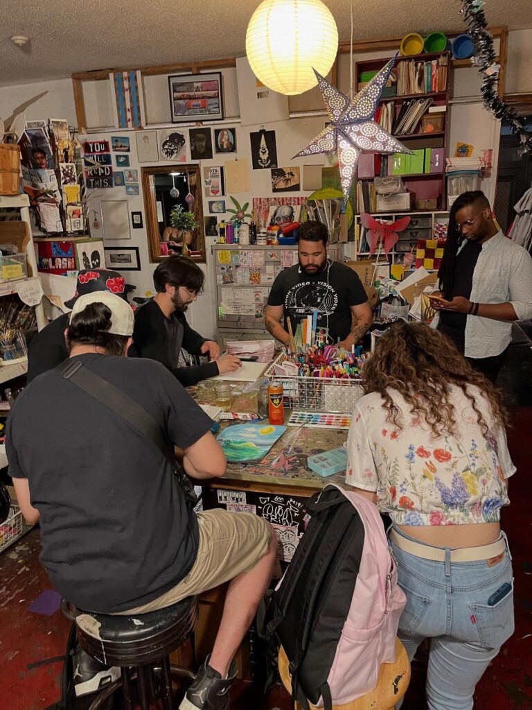 Make Art! Meet People. Make Music. Stop by. Brainstorm Projects. Hatch Ideas. Plot Liberation. Be Social or Stay Focused. We have plenty of basic supplies to share. You are also welcome to bring your own supplies and make, share ideas, discuss possible collaborations.