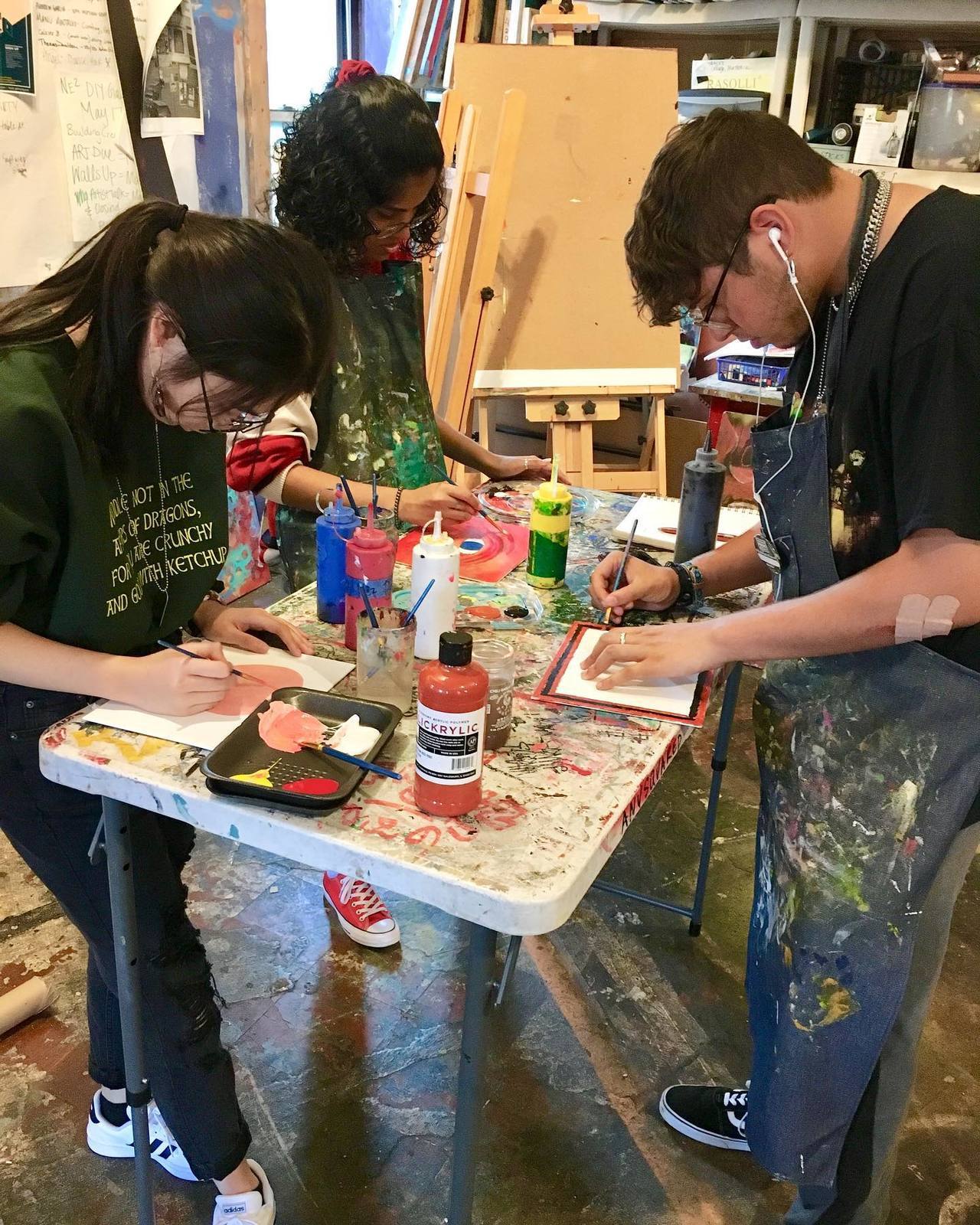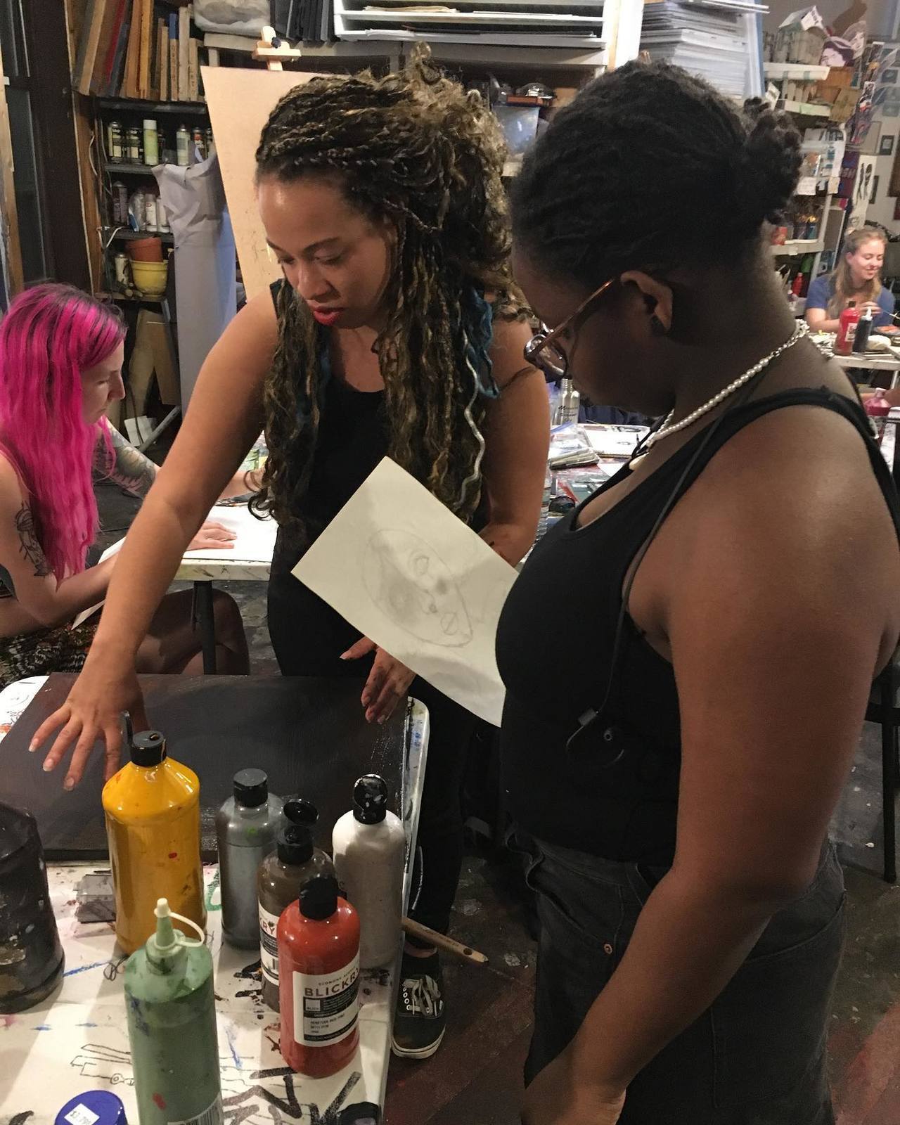 artists making art and making plans for our exhibit opening on October 10th, 6:30pm at the Hairpin Arts Center!